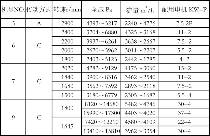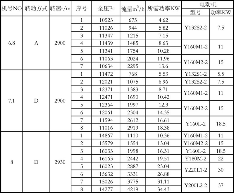 8-09高壓離心風機性能參數表